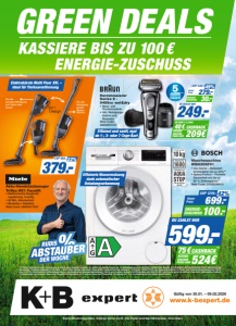 Herrenrasierer Series 9 - 9486cc wet&dry • Nass- und Trockenrasierer • Inkl. Reinigungsstation und Reiseetui Web-Code: 36002257012 5JAHRE HERSTELLER GARANTIE *1 *1) Online registrieren unter www.braun.de und 5 Jahre Garantie erhalten. Es gelten die AGB auf braun.de. *2) Aktionszeitraum: 01.02.2026 - 28.02.2026. Weitere Informationen und Registrierung unter www.braun.de/ promotions. *3) Aktionszeitraum: 01.09.2025 – 28.02.2026. Weitere Infos unter: www.bosch-home.de/exclusiv-cashback. *4) Test Nr. E-0323-PT-22 des Deutschen Instituts für Textil- und Faserforschung Denkendorf (DITF) vom 12.07.22, betreffend die Knitterreduzierung von handelsüblicher Baumwollbekleidung (T-Shirts und Hemden) im Iron Assist Programm nach DIN EN ISO 15487 im Vergleich zu nicht mit Iron Assist behandelten Textilien. *5) Unterschied zwischen der Dauer des Pflegeleicht-Programms 40 °C und der Dauer des Pflegeleicht-Programms 40 °C in Kombination mit der Option SpeedPerfect. 75 € 524€ CASHBACK *3 RECHNERISCHER PREIS NUR Unser Preis 699.- 599 .- DU ZAHLST NUR 100.- ENERGIEZUSCHUSS UVP 1219.- 42% Effiziente Wassernutzung dank automatischer Beladungserkennung Effizient und sanft, egal ob 1-, 3- oder 7-Tage-Bart Waschmaschine WGG256Z91 • Iron Assist – Reduziert Knitterfalten bis zu 50%*4 • Speed Perfect – Perfekte Sauberkeit mit bis zu 65 % Zeitersparnis*5 Web-Code: 32008348010 40 € 209€ CASHBACK RECHNERISCHER PREIS NUR AB DEM 1.2.2026 *2 249.- Unser Preis DU ZAHLST NUR 30.- 279.- UVP 549.99 49% ENERGIEZUSCHUSS GREEN DEALS KASSIERE BIS ZU 100€ ENERGIE-ZUSCHUSS Für die Reinigung großer Bodenf lächen Für die schnelle Reinigung von Tisch oder Couch Elektrobürste Multi Floor XXL – Ideal für Tierhaarentfernung 379.- UVP 489.- 22% Triflex HX1 Facelift • Elektronische Saugkraft- regulierung, 3-stufig • 60 Min. Akkulaufzeit • Beutellos • Kabellos Web-Code: 36204017042 Akku-Handstaubsauger Keine Mitnahmegarantie. Solange Vorrat reicht. Alle Preise sind Bar-Abholpreise. Ohne Deko. www.k-bexpert.de Gültig von 30.01. – 09.02.2026